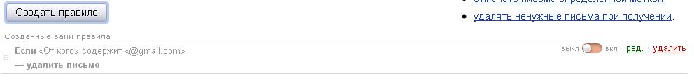Созданное правило можно выключить, включить, редактировать или удалить.